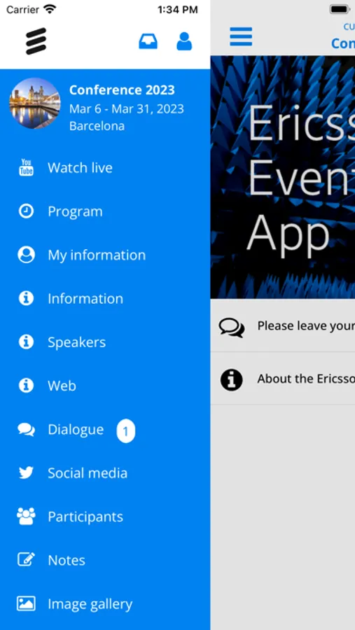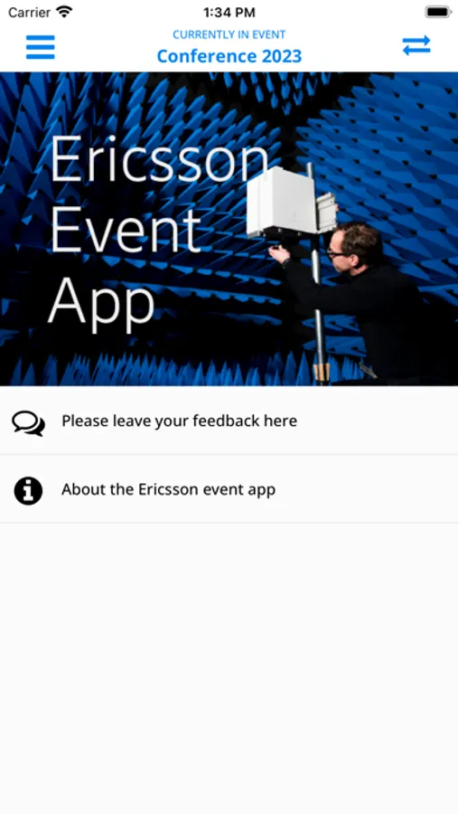 This is the Ericsson event app. It will be used for showing the agenda, speakers and other practical information about the event. In the app you will be able to answer polling questions as well as asking questions to the stage. The app will be used to send out push notifications with updates before and during the event. We hope you will enjoy using these and many more features in the app during the event.