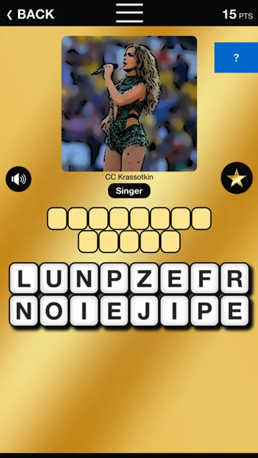 The Celebrity Guessing Game is made up of 40 levels and 400 games. Each game features a picture of a famous person. Your goal is to guess the celebrities' name and spell it out using the scrambled letters.