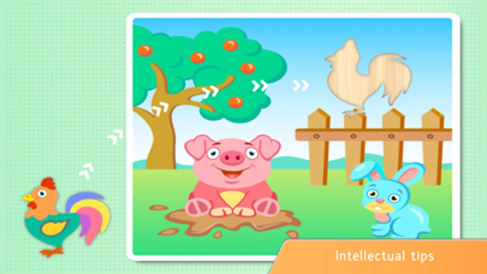 Puzzles for child: Farm - an educational app for children, that helps children develop their intelligence, and helps to ease the process of child rearing for parents. Even young toddlers can complete the puzzles. The app provides clues to help along the way!