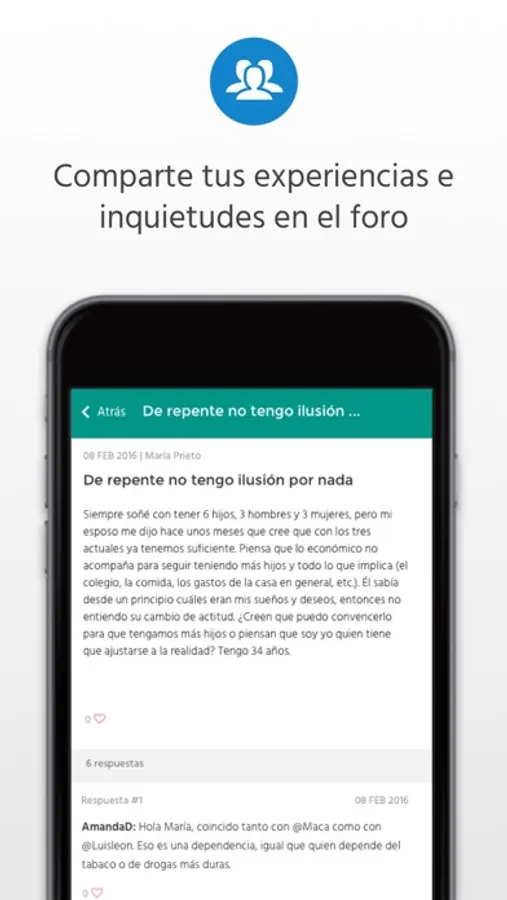- FORO: únete a una comunidad donde puedes conocer y compartir experiencias y sentimientos similares a los de otras personas.