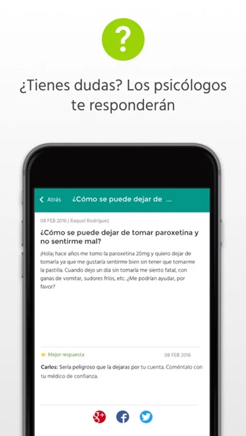 - ¿DUDAS? Plantea tu consulta y los psicólogos te contestarán en el Consultorio online.