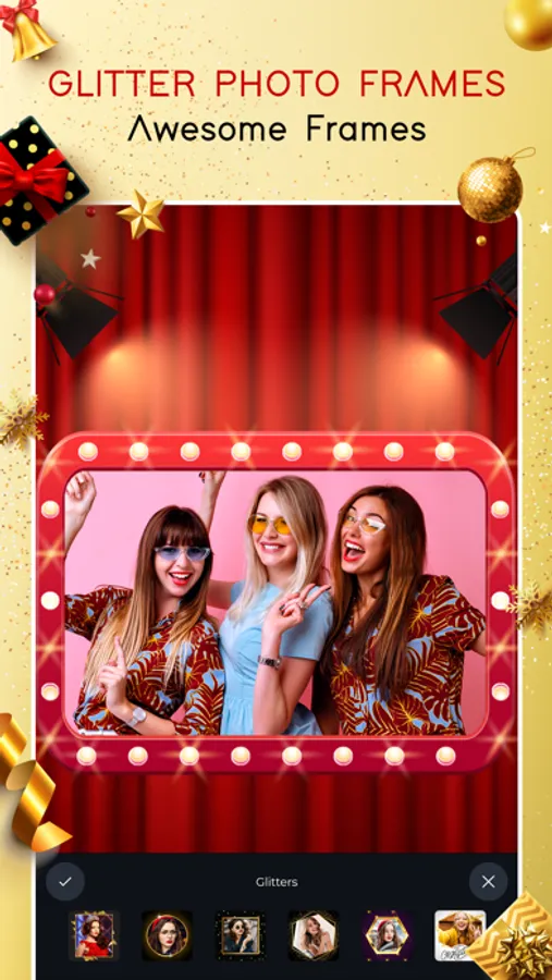 Glitter Photo Frames - Image Editor is nice app that lets you customize your photos. Choose a photo from your gallery or take it with the camera of your device, select a frame and generate your photo .