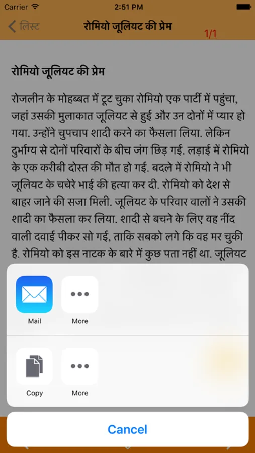 • Send the stories via email, SMS, or can copy them to the clipboard