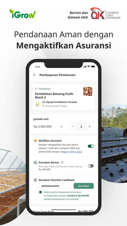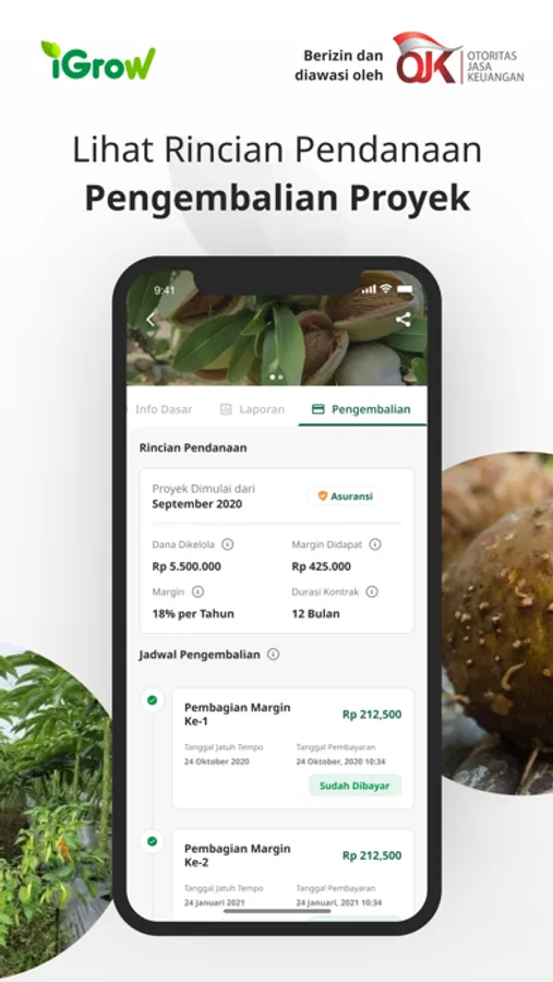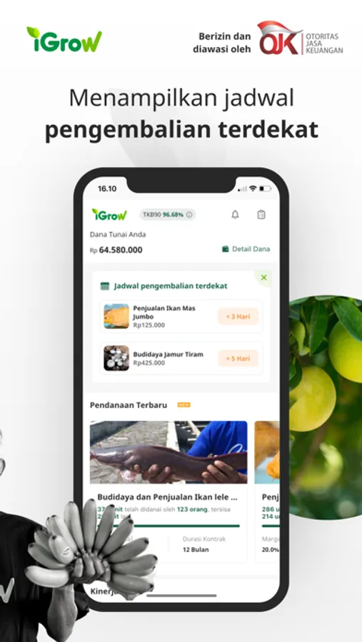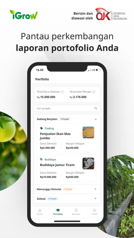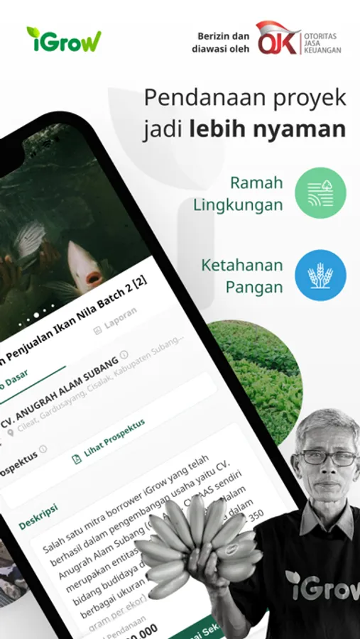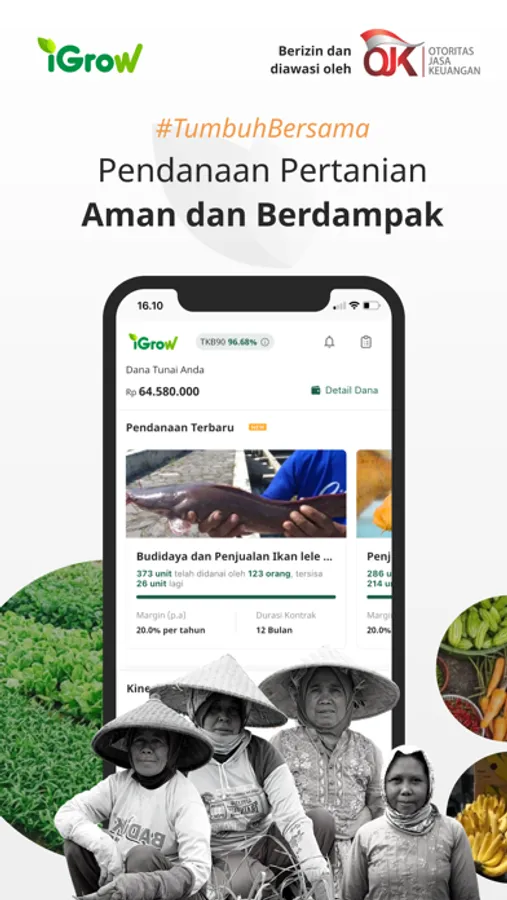 iGrow is a P2P Lending Platform that has listed by the Financial Services Authority of Indonesia (OJK). We connect people who want to provide financing in the agricultural sector to farmers.