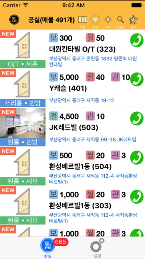 부산 전지역 6000개 가량의 매물중