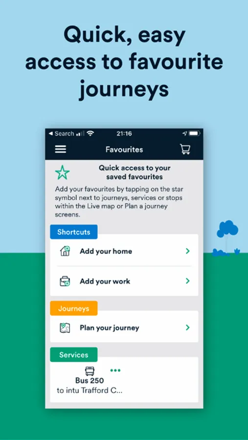Save your favourite journeys, bus services and stops to make journey planning even easier.