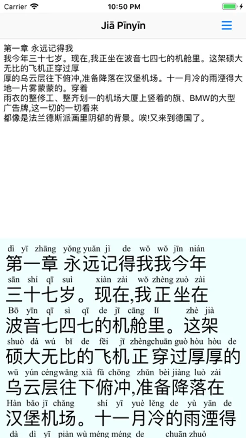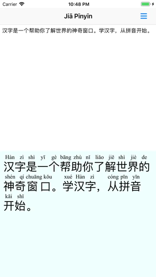 Just take a photo, or select an image from your library, you can extract text and add Chinese pronunciation symbols. You can translate other languages into Chinese.