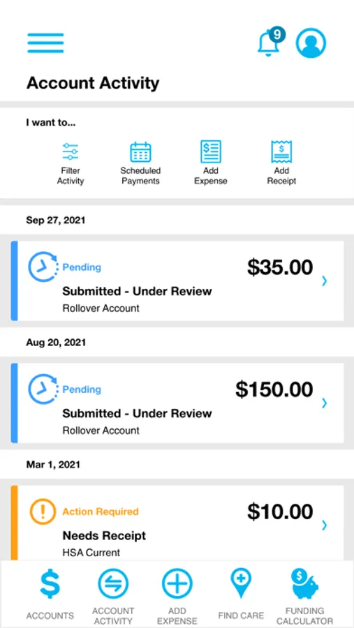 • Benefit Health Account balances and details