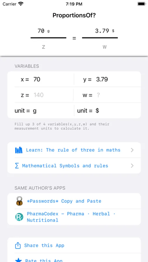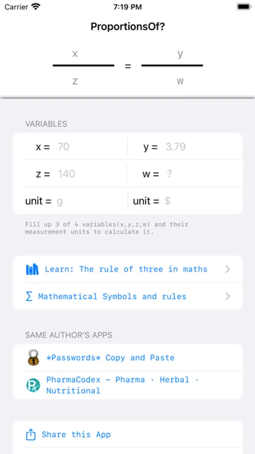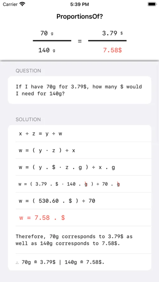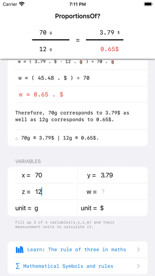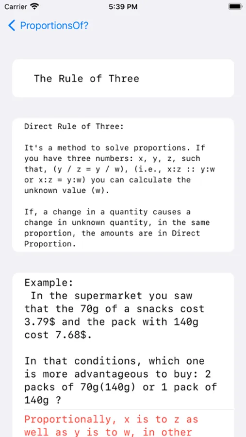 The App also a great tool for children to get a notion of how they can calculate proportions using the rule of three to start to use on their daily-life.