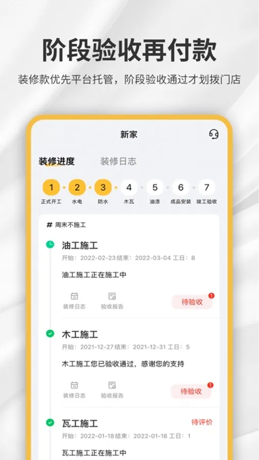【付款走线上,装修全保障】品质保障承诺,付款走金螳螂家APP线上项目,客户装修款进行第三方平台托管,根据工程进度和验收情况,分批划入门店账户,金螳螂家总部进行品质和意外双重保障;