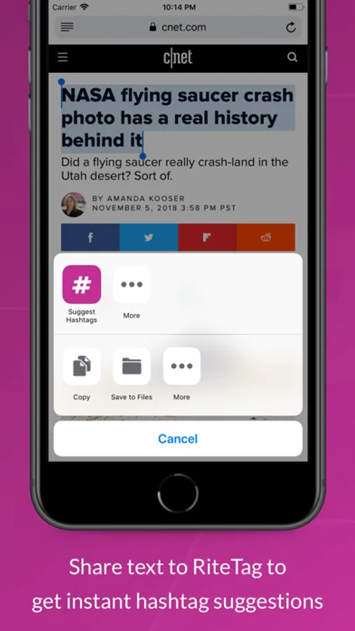 Great for Instagram captions, Tweets, LinkedIn updates, Facebook updates and all social networks with hashtags! Paste or share a text of your post to RiteTag app to get hashtag suggestions based on its content. Instantly drill down to the best ones to copy/paste.