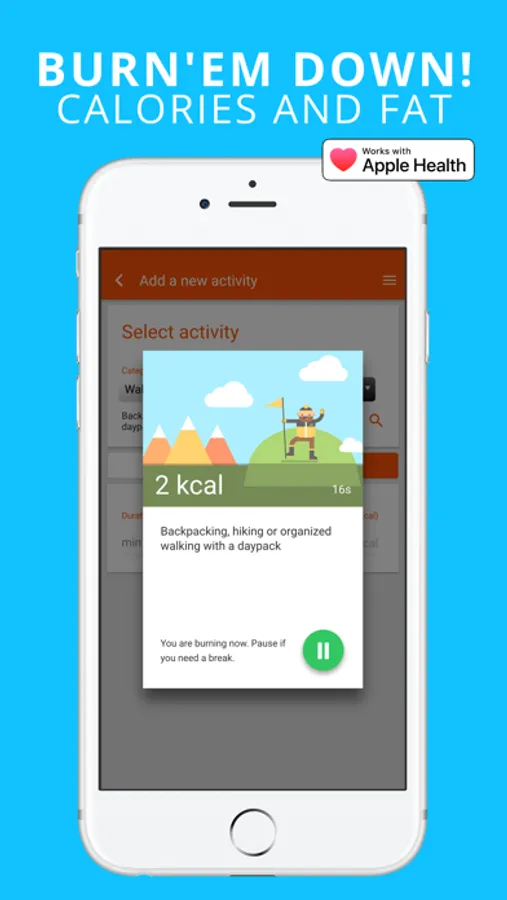 Burn calories and lose weight doing simple things like walking or cleaning your house. The app is amazingly simple to use: just select an activity, tap the "Record" button and watch how many calories you are burning! You don't need any additional equipment, such as a pulsometer, pedometer or even GPS services on your device.