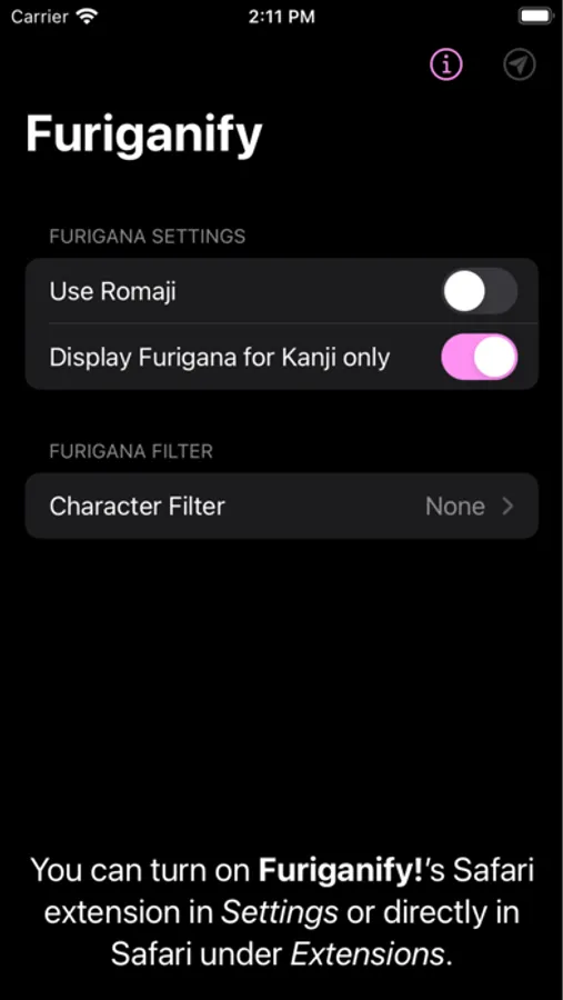 All processing occurs on your device to ensure maximum privacy. Furiganify only reads the content from webpages you explicitly select. No data about the webpages you visit or their content ever leaves your device.