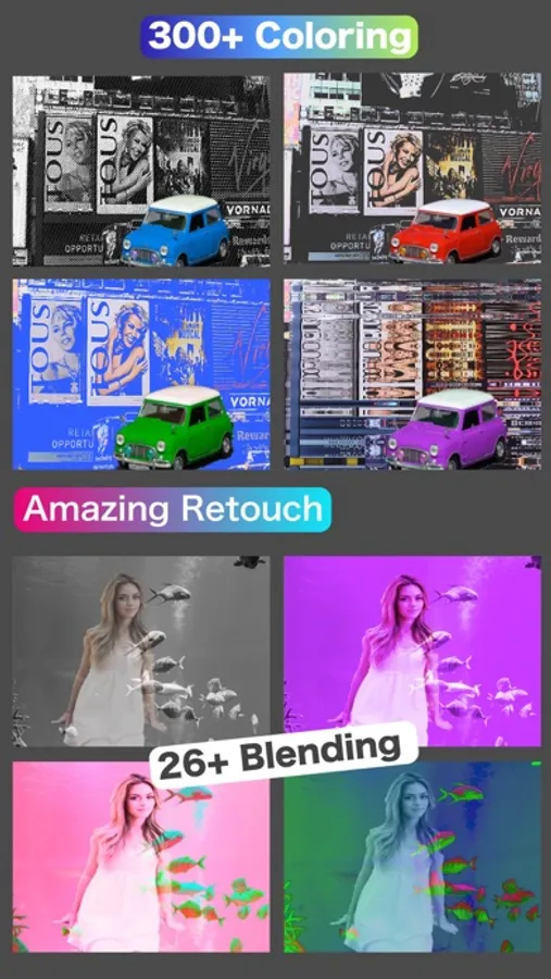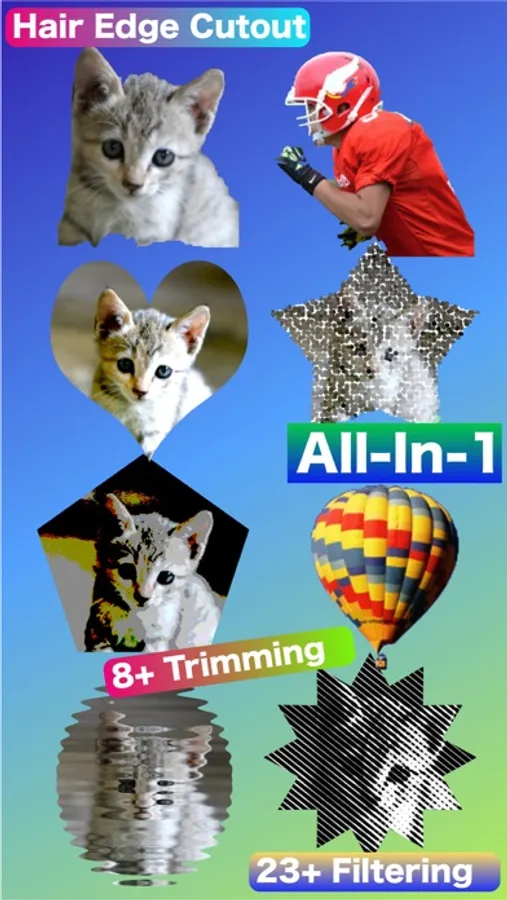 ArtCam is smart and all-in-1 photo editing tool , that allow you to make hair edge cutout , trimming by various shapes, impressive filtering , seamless blending in many modes and painting by colored brushes .