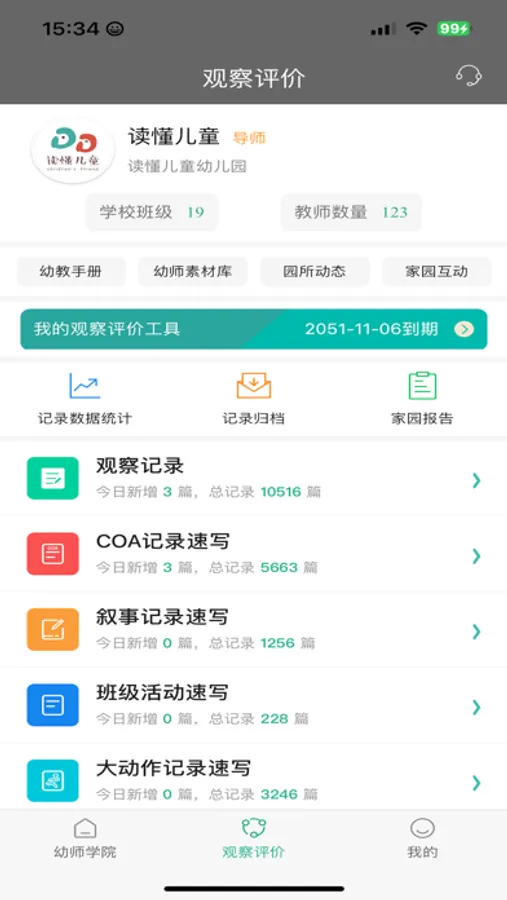-支持观察记录成果的多种应用,包括:归档迎检、家园沟通、教学科研等