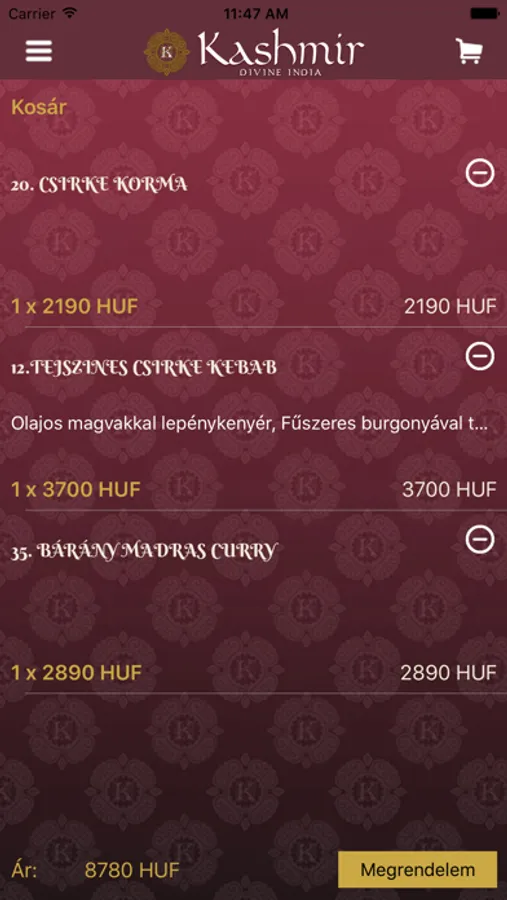 Mi itt a Kashmírban egy jó indiai étterem atmoszférájának tükrözéséhez szükséges feltételek egyensúlyát teremtettük meg. Arról vagyunk híresek, hogy kiváló ételeket szolgálunk fel, ami a visszatérő vendégeink számából egyértelműen kitűnik. A központhoz közel, a hibátlan belső dekoráció, barátságos kiszolgálás és a misztikus légkör vendégeinket a csúcsra helyezik