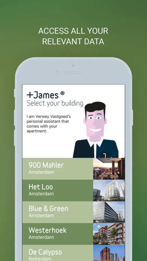 Do you live in a +James building? Then you can use the official +James app. In the app you can share messages with other residents on the timeline and contact +James directly. You can also read in the app the latest news about your residential building and the environment, you can use the services of +James and you will find up-to-date manuals about your home.