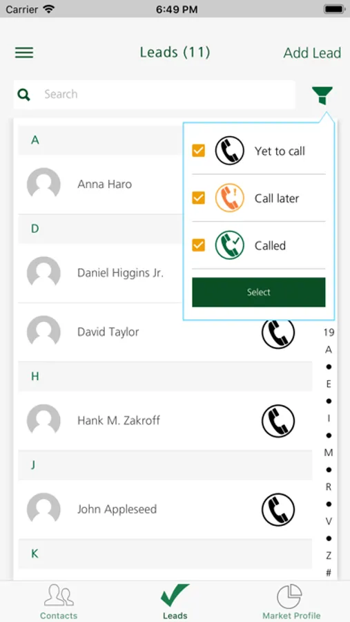 AgentSAM mobile application provides an in-depth Market Profile analysis of leads base on your understanding to each of them. Without any login, you can start identify and manage your sales leads and explore your sales strategy.
