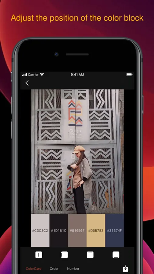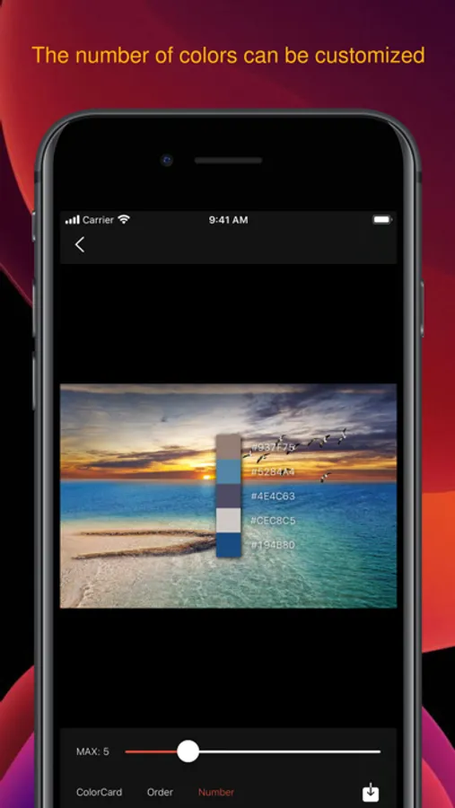 By shooting or importing photos, extract the five main colors (main color, auxiliary color, active color, static color, background color) from the photo to provide reference and inspiration for your color matching!