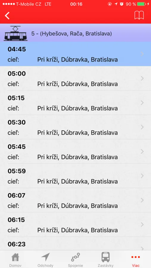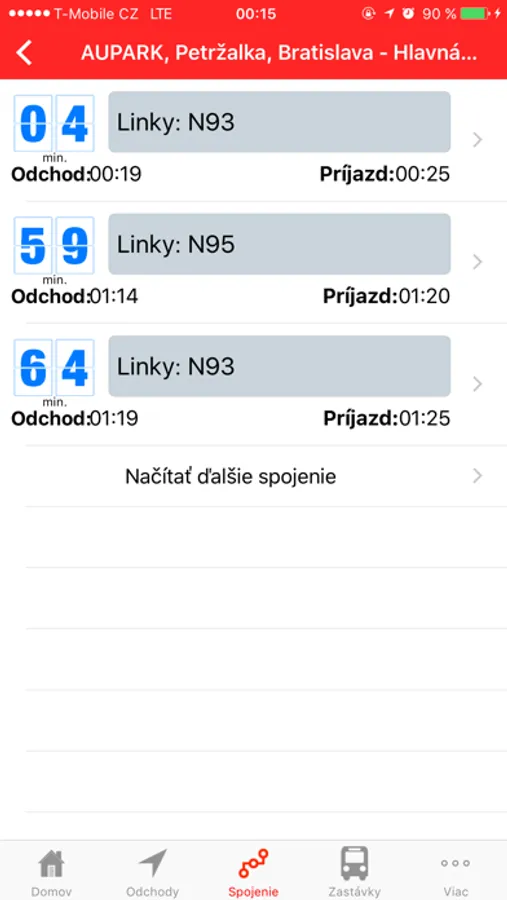 vyhledat jízdní řád požadované linky. Prakticky všechny informace jsou i bez nutnosti připojení k internetu.