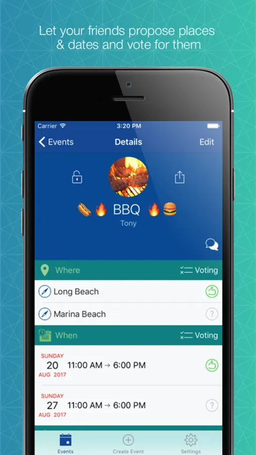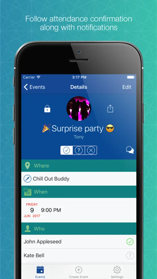 Chat with your friends and once you select the best options, the app let’s you follow the attendance confirmations.