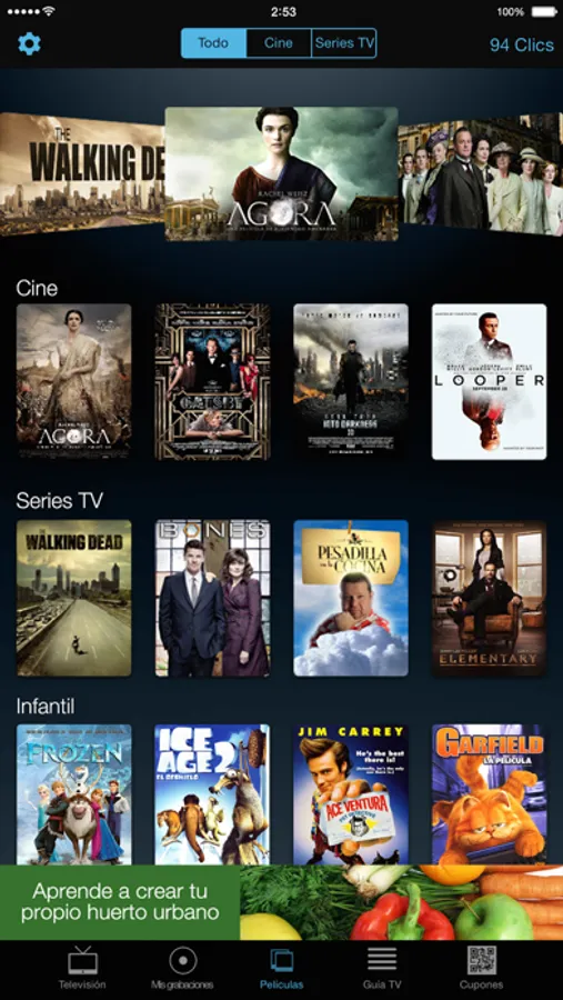 - TV: Desde esta sección podrás acceder a un conjunto de los canales de televisión de la plataforma cuidadosamente seleccionado, para que puedas disfrutar de su emisión en cualquier lugar.