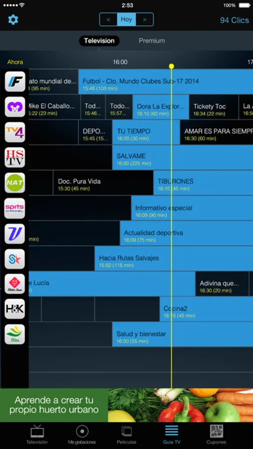 - EPG: Desde aquí podrás consultar la Guía de Programación completa de los canales emitidos.