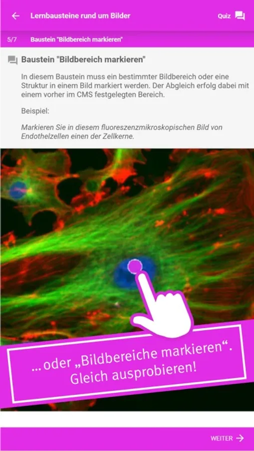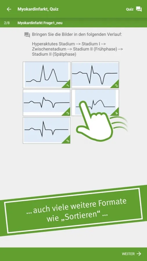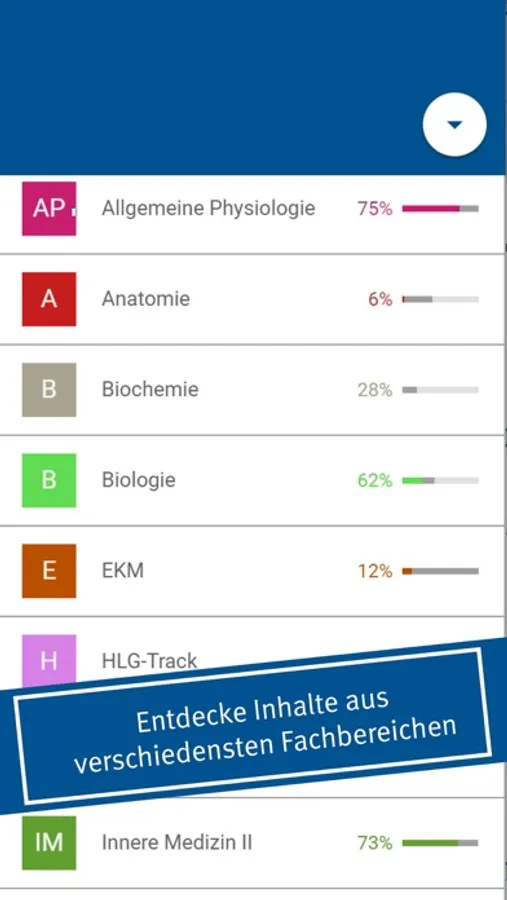 Die eMed App ist eine interaktive Lernanwendung, die Studierende beim Erlernen ihrer Studieninhalte unterstützt. Individuell auf die Inhalte des Studiums abgestimmt, können Dozierende ihre Inhalte über ein Content Management System einpflegen und den Studierenden in dieser App zur Verfügung stellen. Neben den abwechslungsreichen Fragentypen, kann der Studierende zwischen einem Quizmodus und Lernmodus wählen, je nachdem ob er sein Wissen nur erweitern oder direkt unter Beweis stellen möchte. Zur besseren Prüfungsvorbereitung können Dozierende sogar eine individuelle Klausur zusammenstellen, die die Studierenden in einer vorgegeben Zeit absolvieren müssen.