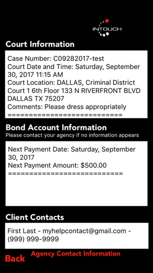 InTouch enables clients to maintain contact with their agent discretely and securely without interfering with any of their other apps. Clients are provided an easy and innovative method of checking in, requesting assistance, transmitting messages and coordinates, getting updates on their account, and reminders of upcoming events.