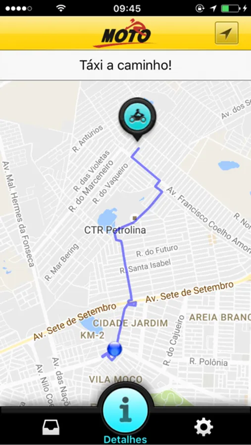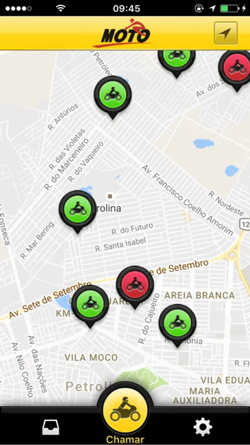 Nosso aplicativo permite que você chame um de nossos mototaxis e acompanhe o deslocamento do carro no mapa, sendo avisado quando ele estiver na sua porta.