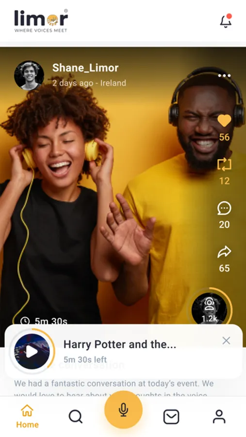 Unlike traditional podcasting, Limor is an interactive social audio experience. We use the power of speech to help you meet new people, broaden your network, find a new information and spark real and meaningful audio conversations.