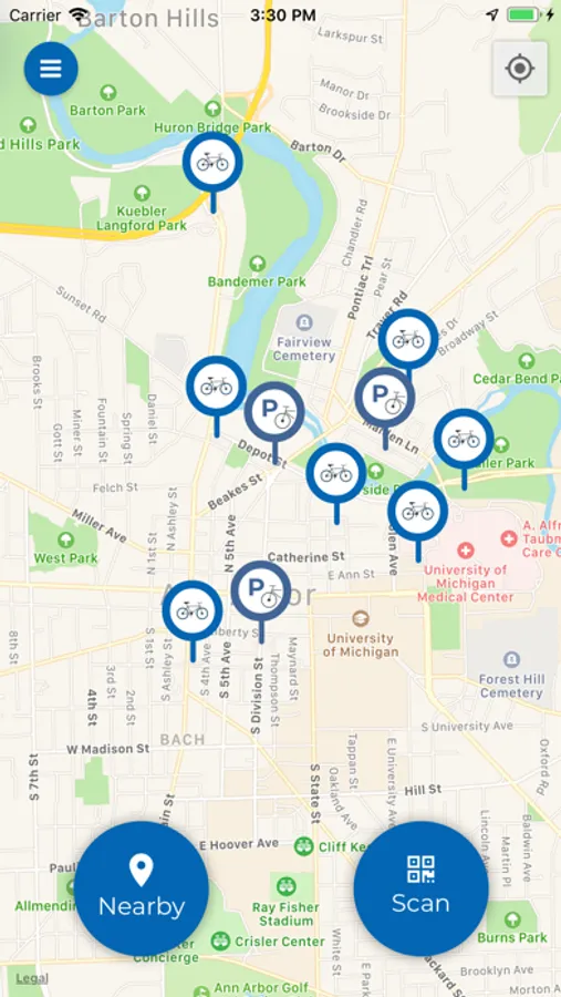 - Open the app to find nearby bikes, bike parking, scooters, bus stops, and more