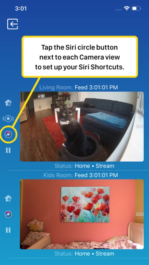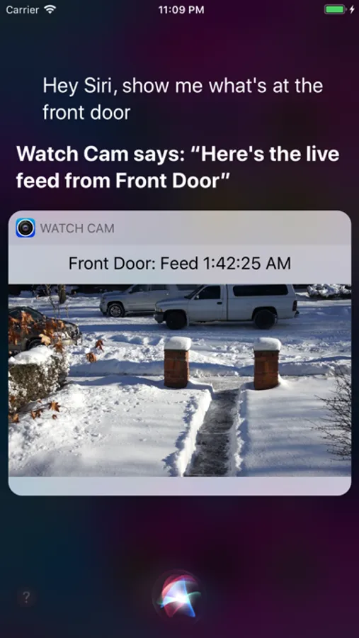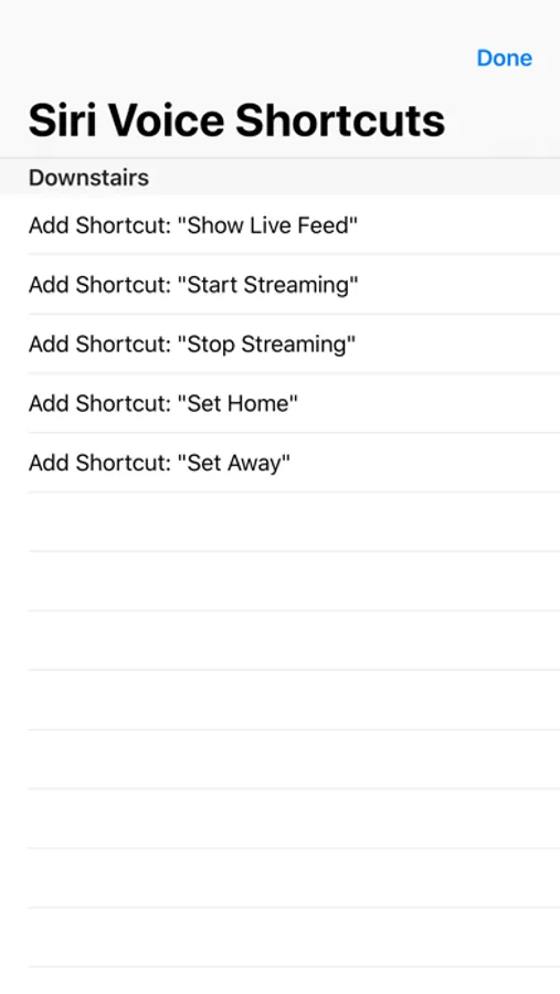 The app has Siri Voice shortcuts, and they can be used to set your home into Away or Home state using Siri on your Watch or iPhone, as well as to display the live feeds from your cameras.