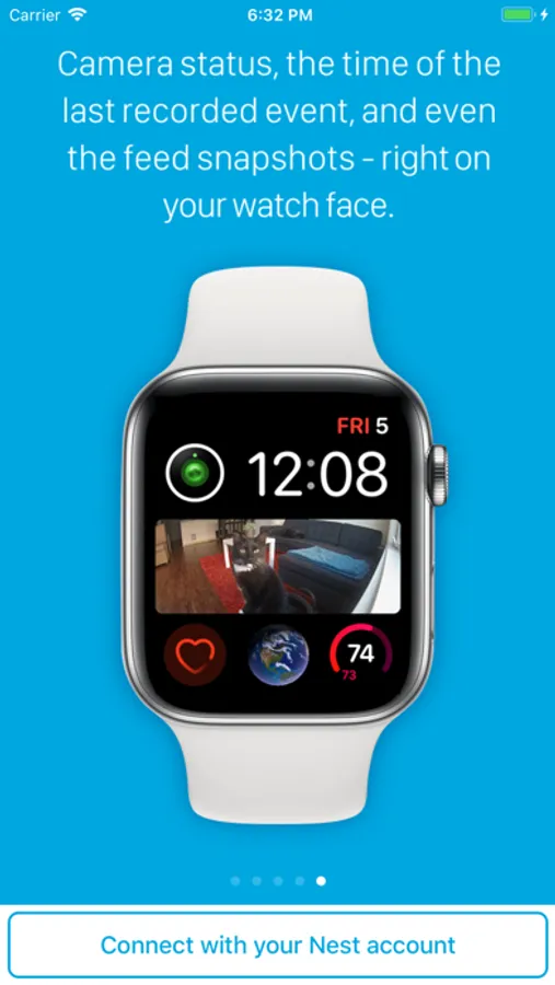 • One of the watch complications shows you the snapshot from the camera of your choice, right on the watch face. The snapshot updates periodically all on its own, so you'll have a recent view of your camera any time you look at the watch. Useful when waiting for that package to arrive.