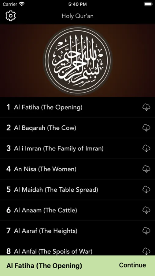 You can listen offline by downloading each Surat.