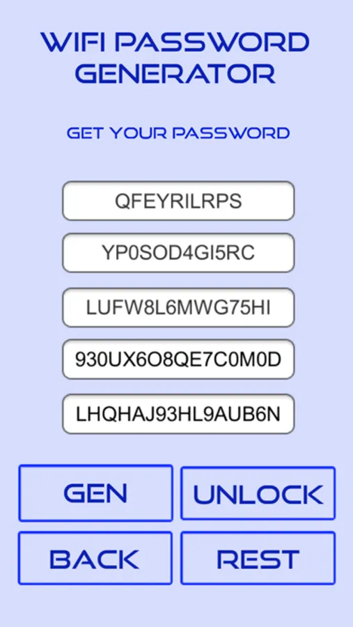 It's pretty simple to understand. On the first screen just press start, after this press one of the 4 options wpa, wep, was or wpa2 and the last step press on the gen button. After this you will receive 3 random alphanumeric passwords of different lengths up to 14 characters. If you want longer up to 20 you can purchase this item pressing on the unlock button.