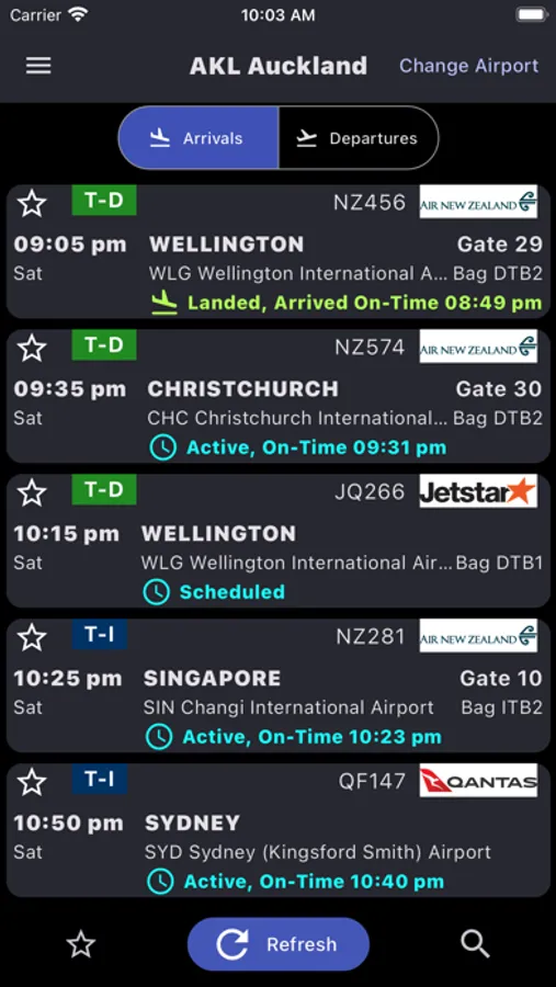 Flight arrivals and departures information for Auckland Airport (AKL)
