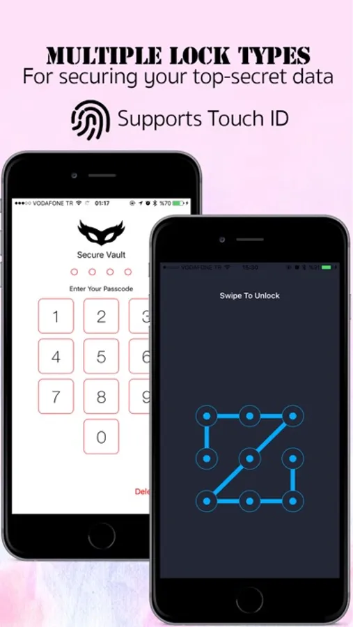 With Photo Video Hider App, it is now possible to protect your secrets in private secure folders inside the app with pass code protection (Touch ID is also supported). Secure and hide your very secret private pics, videos, notes and contacts inside Private Vault.