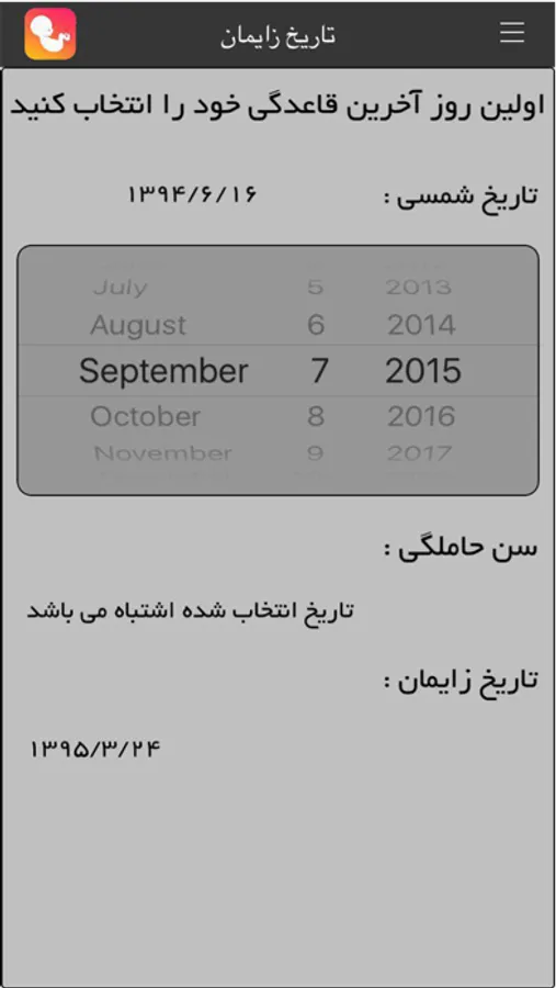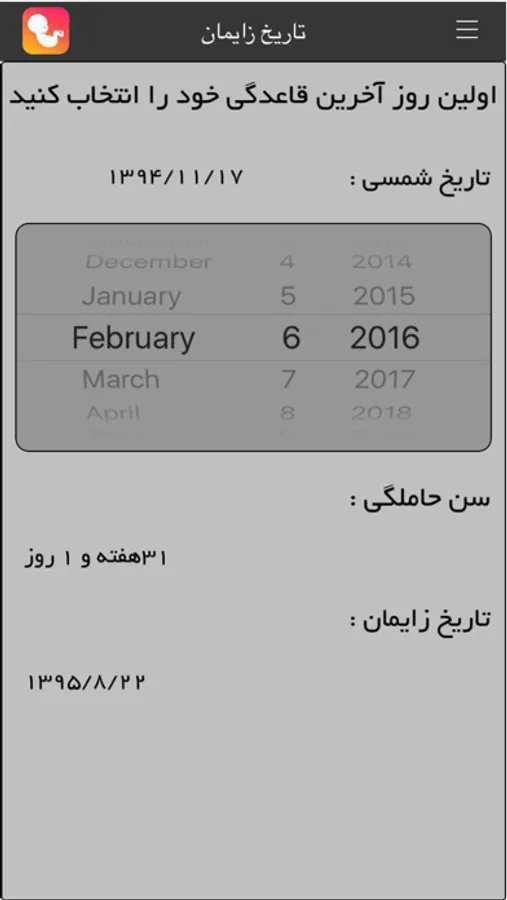 شما از طریق این اپلیکیشن براحتی قادر به محاسبه سن حاملگي و تاريخ زايمان هستید.
