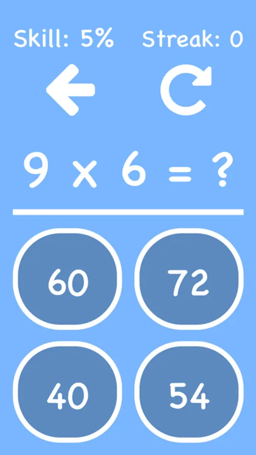 Train yourself, challenge your friends, and see how you rank up against the rest of the world. As your skill rating increases so will the amount of difficult problems you receive. With 5 colorful backgrounds to choose from learning math has never been so simple and colorful! Can you achieve a 100% skill rating?