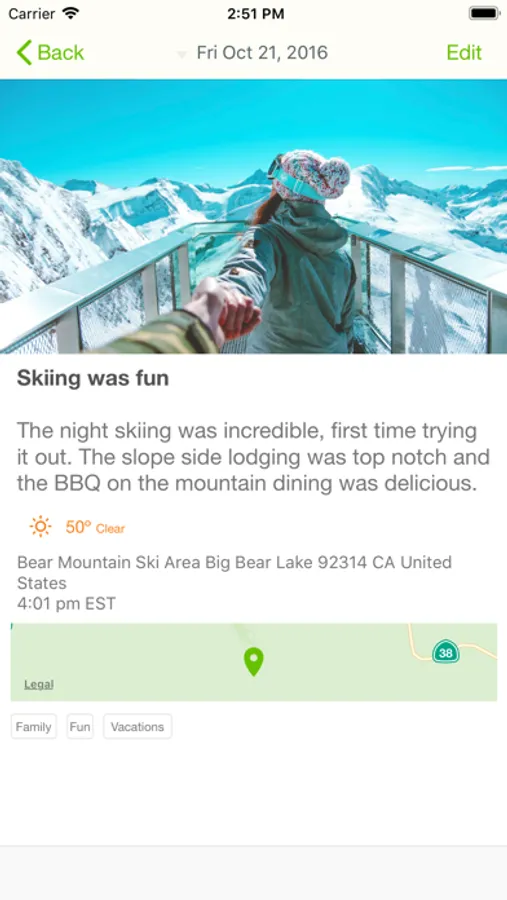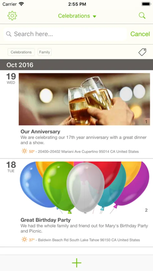 Vita Journal Diary helps to records your daily moments, life events, thoughts, activities, travel, gratitude and special occasions. Include Location, Weather and Temperature*, Photos* and Tags.