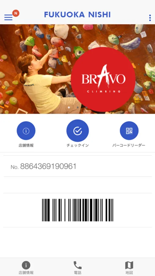 This app is a membership card of "BRAVO CLIMBING FUKUOKANISHI(MEINOHAMA)".