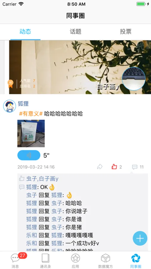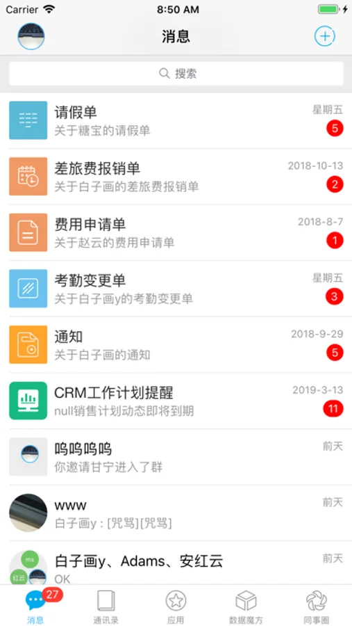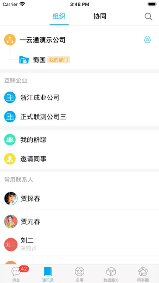 通讯录:企业组织结构一目了然,电话、短信、邮件,一气呵成。