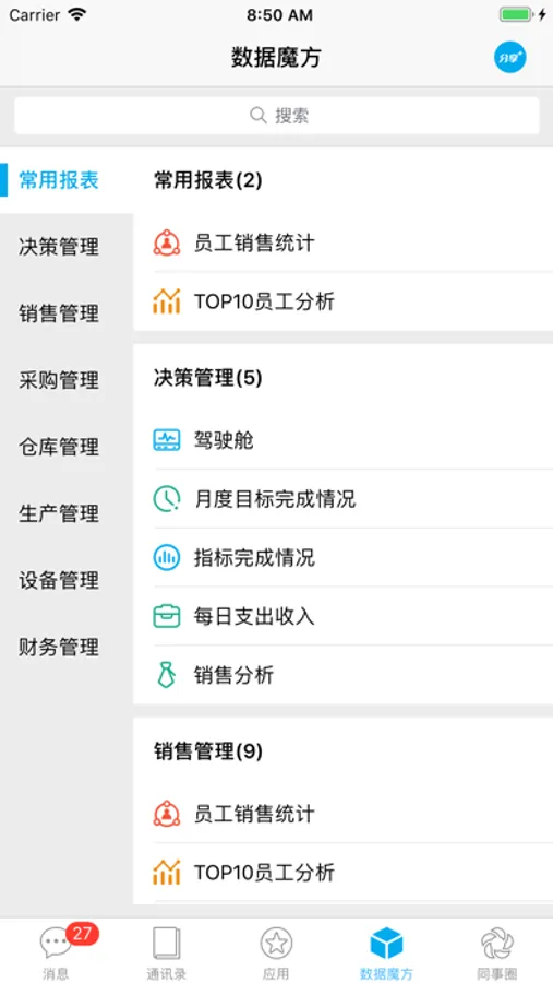 应用中心:提供更多的企业应用,如CRM、SAP服务等,让企业数据全部打通。