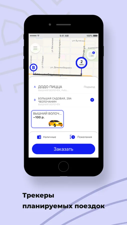 Выберите опцию “Предварительный заказ”. Поиск автомобиля начнется незадолго до заказа поездки, и автомобиль приедет к назначенному времени. Также вы будете заранее знать стоимость поездки.