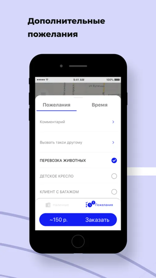 Добавляйте к заказу пожелания, напишите комментарий водителю, ускоряйте поиск автомобиля.