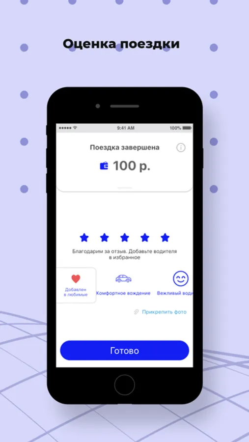 Поставьте оценку водителю, напишите отзыв или выберите реакцию из готовых шаблонов.
