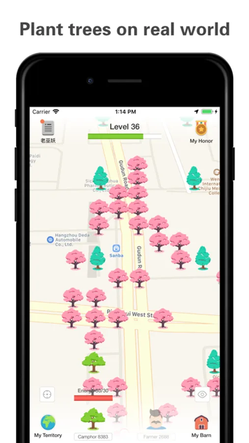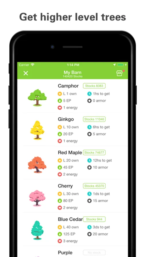 Energy: The initial energy value is 10. Consume 1~5 points to plant 1 tree. Restore 1 energy point every 60 seconds. The energy value is up to 100.