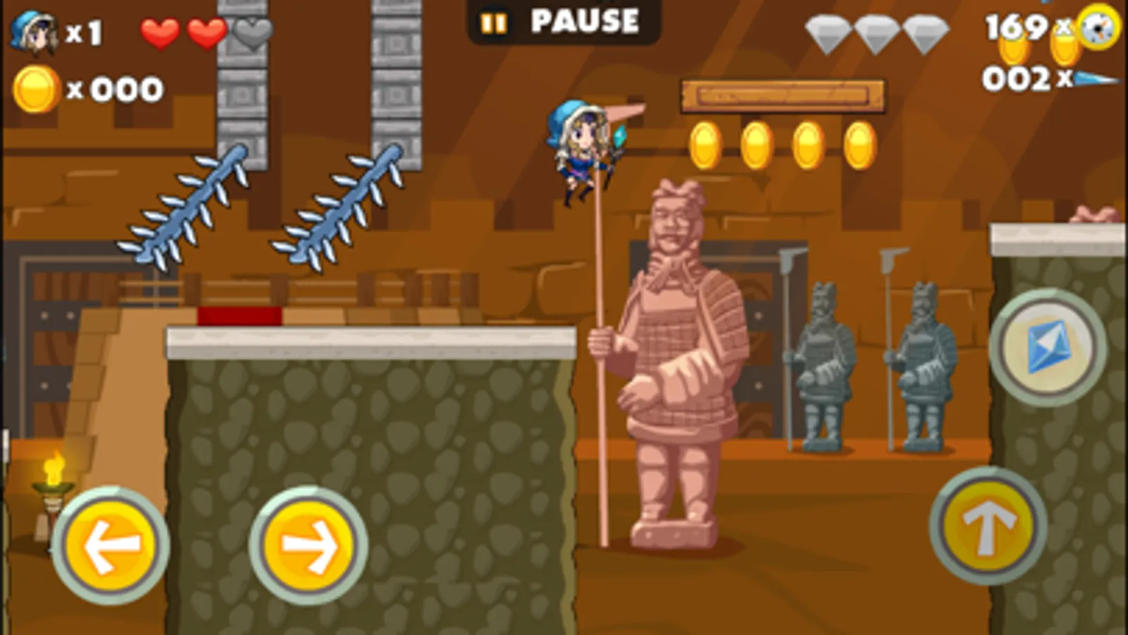 You may find many sparkling gold coins on the road. Do not miss them but collect them. Once you have gathered 100 coins, you may exchange them for life.