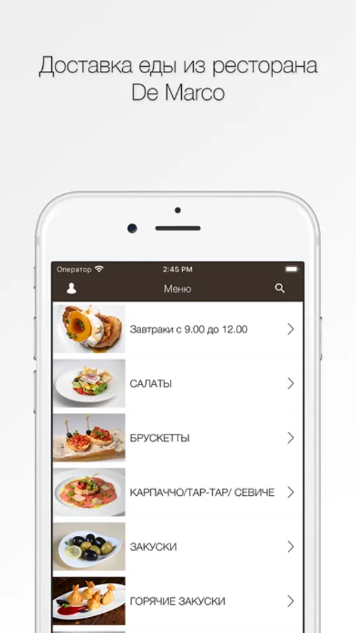 Мобильное приложение “Cafe De Marco” позволит вам легко и просто оформить и оплатить доставку или самовывоз изысканных блюд итальянской кухни.